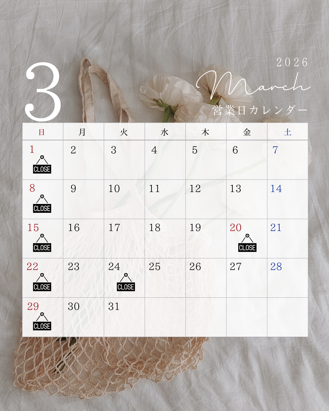 【3月のお休みカレンダー】