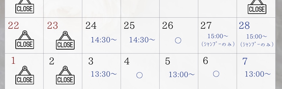 【4月のお休みカレンダー】